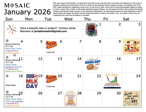 The Mosaic January/February calendar is here! Print your copy today.